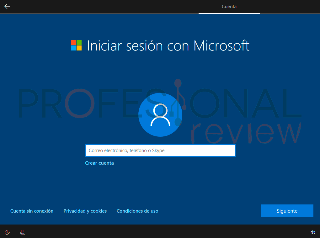 A continuación, nos sugiere que iniciemos sesión con una cuenta de Microsoft. Si este es nuestro deseo pues adelante. Pero si por el contrario deseamos solamente crear una cuenta local y además decidir si ponerle o no contraseña, debemos elegir “Cuenta sin conexión” y “Siguiente”