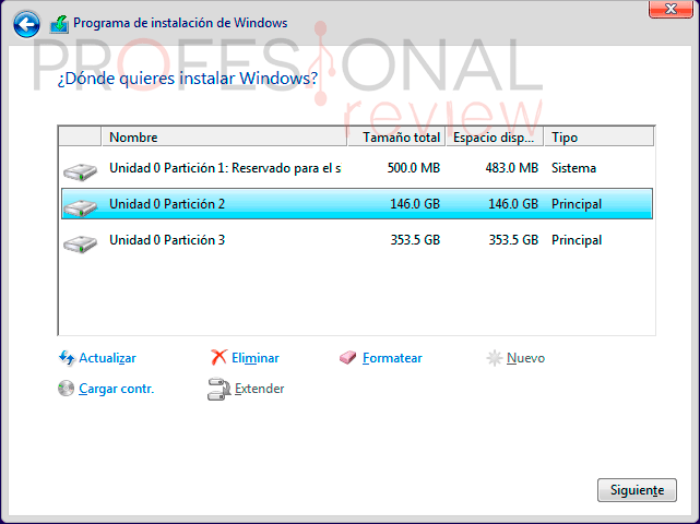 En un nuevo paso el asistente nos pregunta dónde deseamos instalar Windows 10.